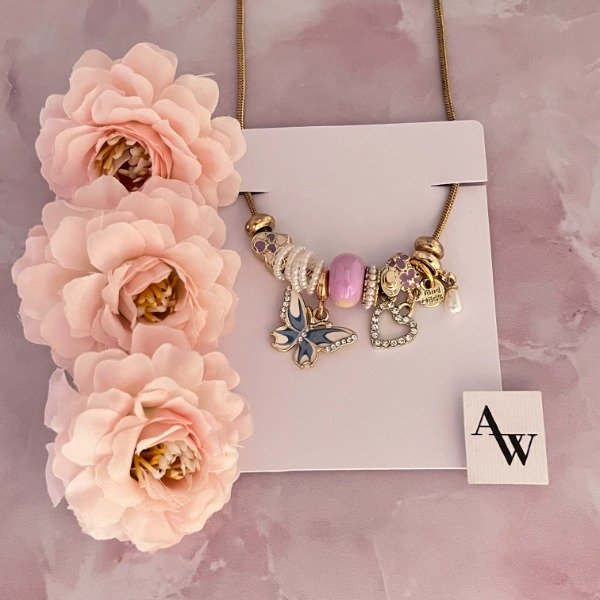 Cadena Con Dije Acero Dorado Art 4001 Mariposa